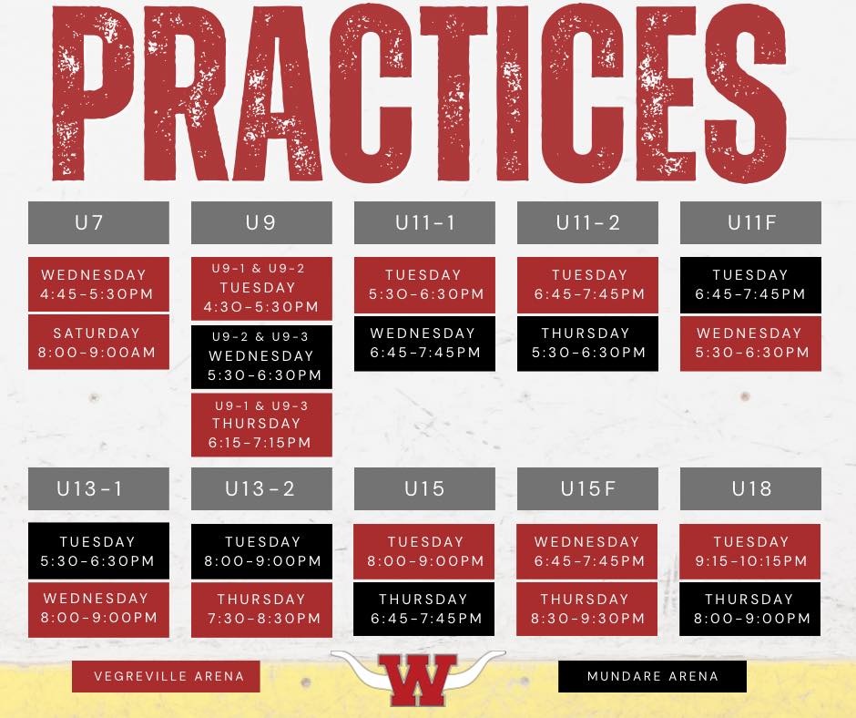 2025/26 practice schedules