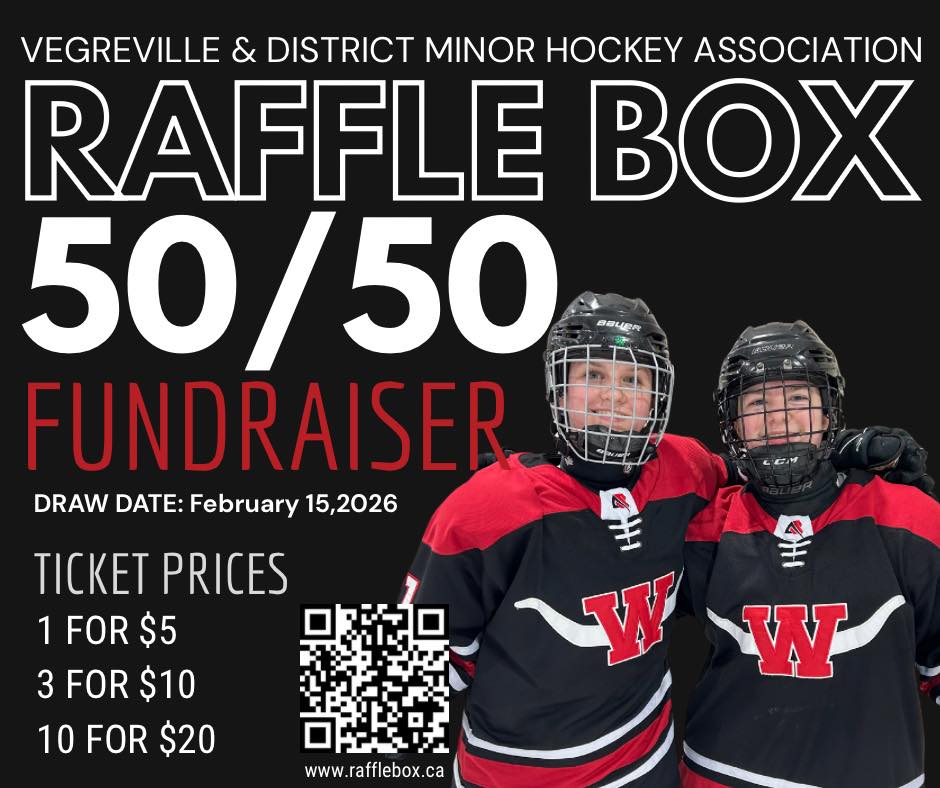 Support Vegreville & District Minor Hockey Association this season with our online 50/50 fundraiser.