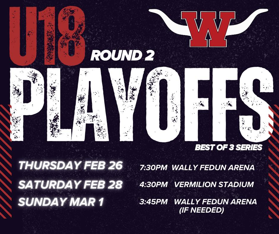 Our U18 team will hit the ice for their first round of playoff hockey on Thursday at the Wally Fedun Arena. The team will also be doing a small ceremony for the graduating players.